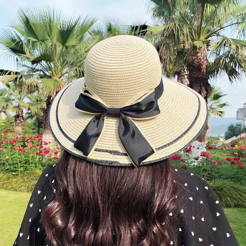 Beach Straw Hat Elegant Lady's Style Wide-brimmed Straw Hat Sun-shading Straw Hat for Going Out and Traveling for Women