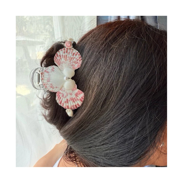 Beach Style Mermaid Hair Clip - Handmade Natural Clam Shell Hair Claw - Summer Accessory for Women Girls Coastal Vibe