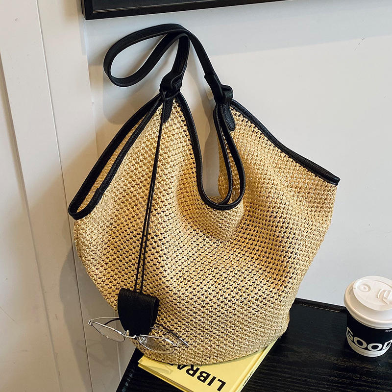 Beach Vacation Large Capacity Straw for Women 2025 Summer New Korean Style Casual Commuter Handbag Shoulder Tote Bag