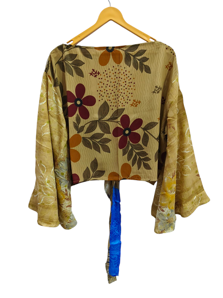 Beach Wear Skirt Top House Wear Short Sari Silk Tie Top Long Sleeves Gift For Her Short Robe