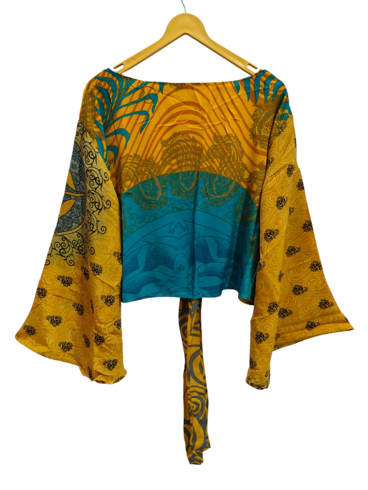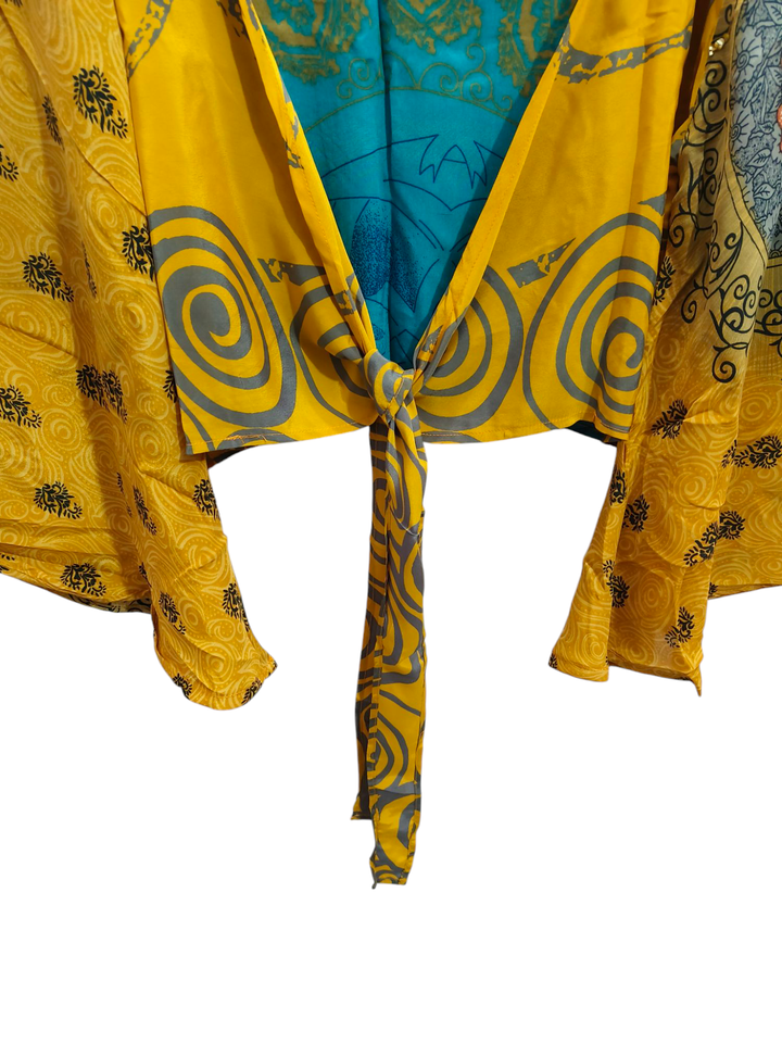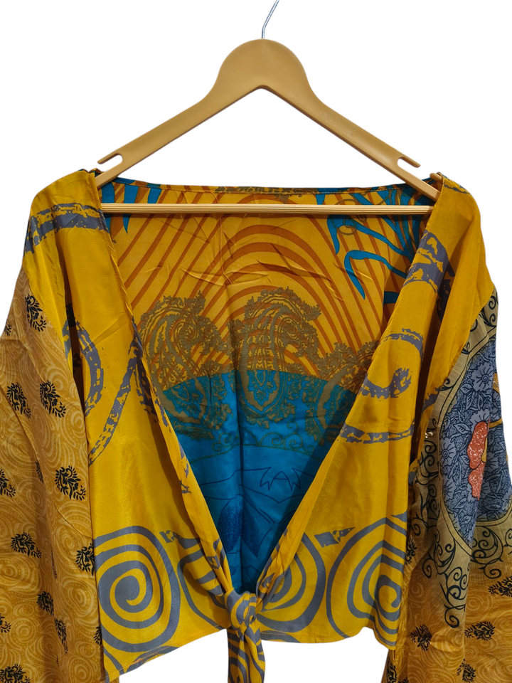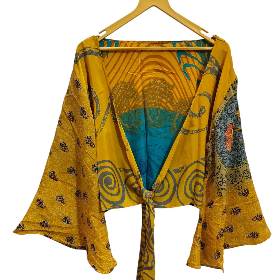 Beach Wear Skirt Top House Wear Short Sari Silk Tie Top Long Sleeves Gift For Her Short Robe