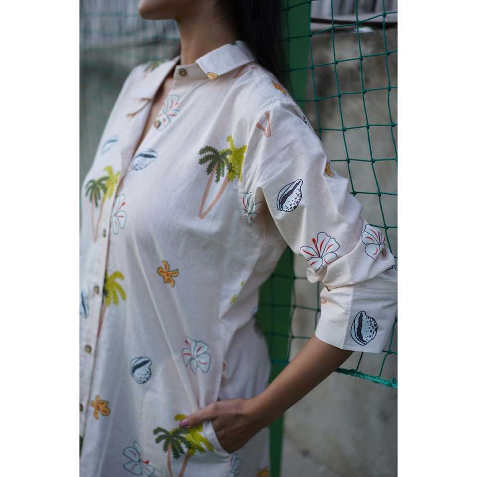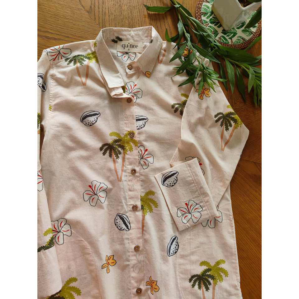 shell, hibiscus, and palm tree printPattern