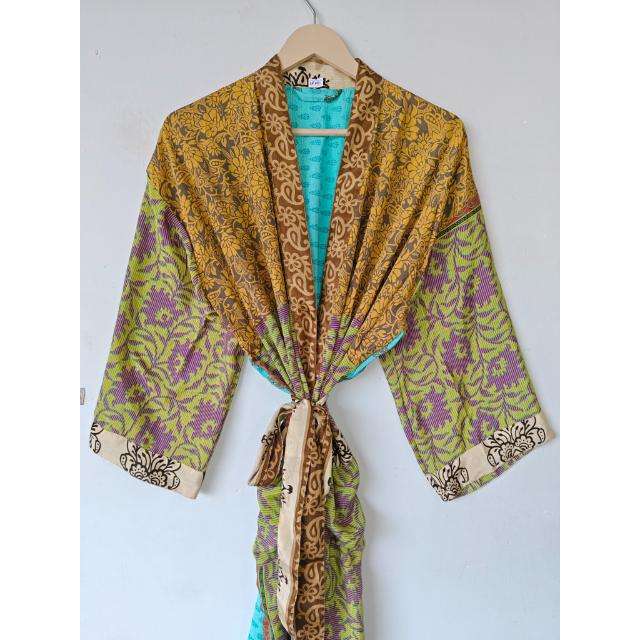 Summer Spring Thermal Silk Kimono Robe Indian Style Bikini Cover Dressing Gown Long Maternity Kimono for Women Beachwear