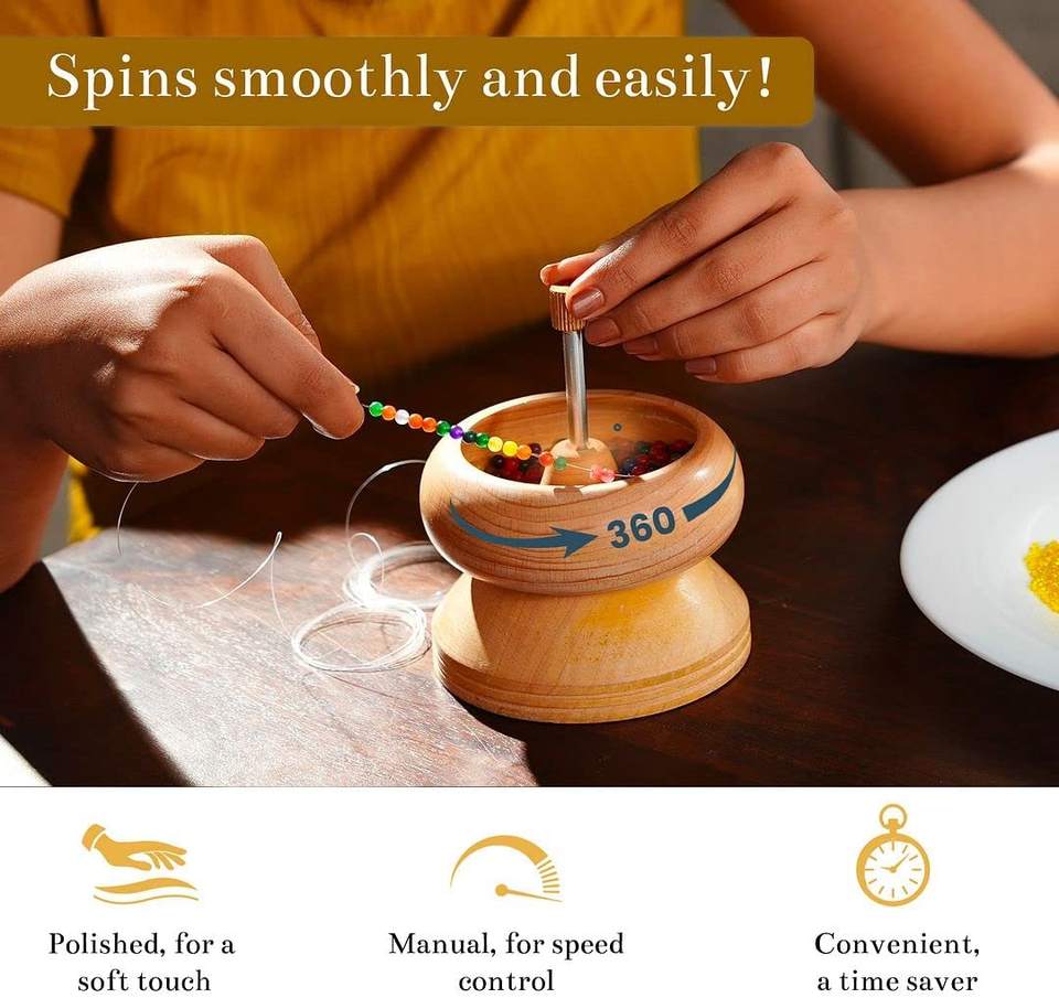 Bead Spinner with Big Eye Beading Needle,Waist Beads Kit for Jewelry Making Bracelet Maker Stringing Pinewood Wooden Crafting