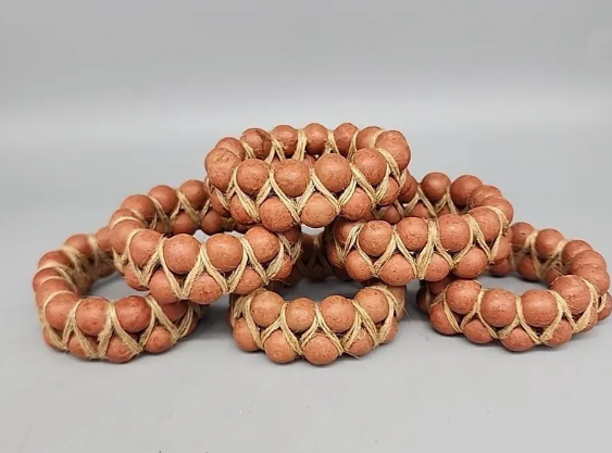 Bead & Twine Napkin Rings Set of 6 Bohemian Maximalism Farmhouse Holders Vintage