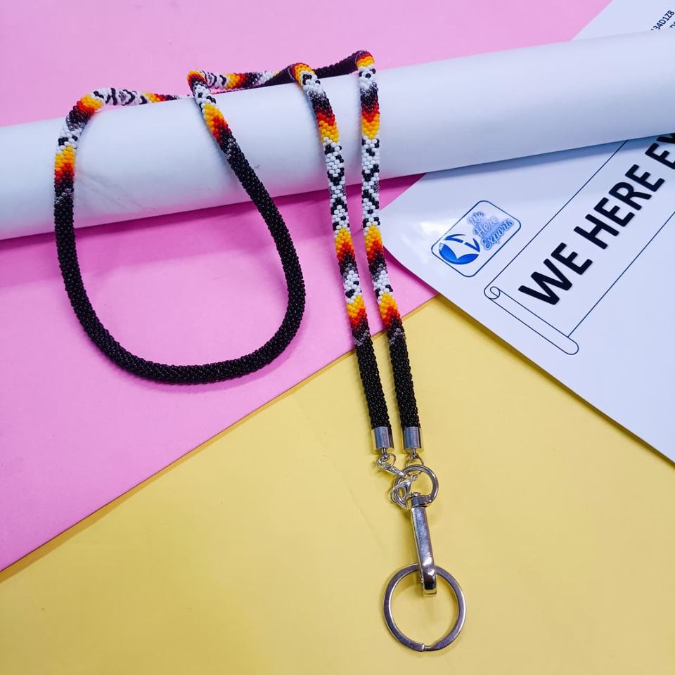 Beaded Crochet Lanyard Classic Style Eco-Friendly Inlay UV Printed Customized Shape ID Badge Holder Beaded Lanyard Keychain