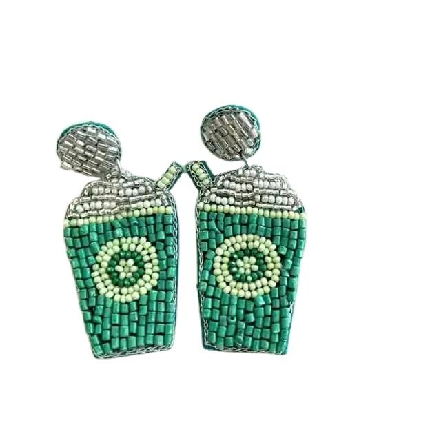 Beaded Drop Earrings White Green-Fashion Jewelry Accessories for Spring Summer Embroidery Needlework by MD HANDICRAFTS