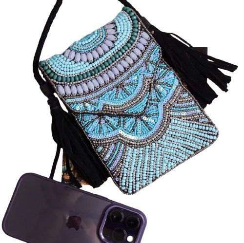 Luxury Custom Beaded Canvas Evening Clutch Bag with Chains Tassel Decoration for Women's Weddings Wholesale Guru Kirpa Exports