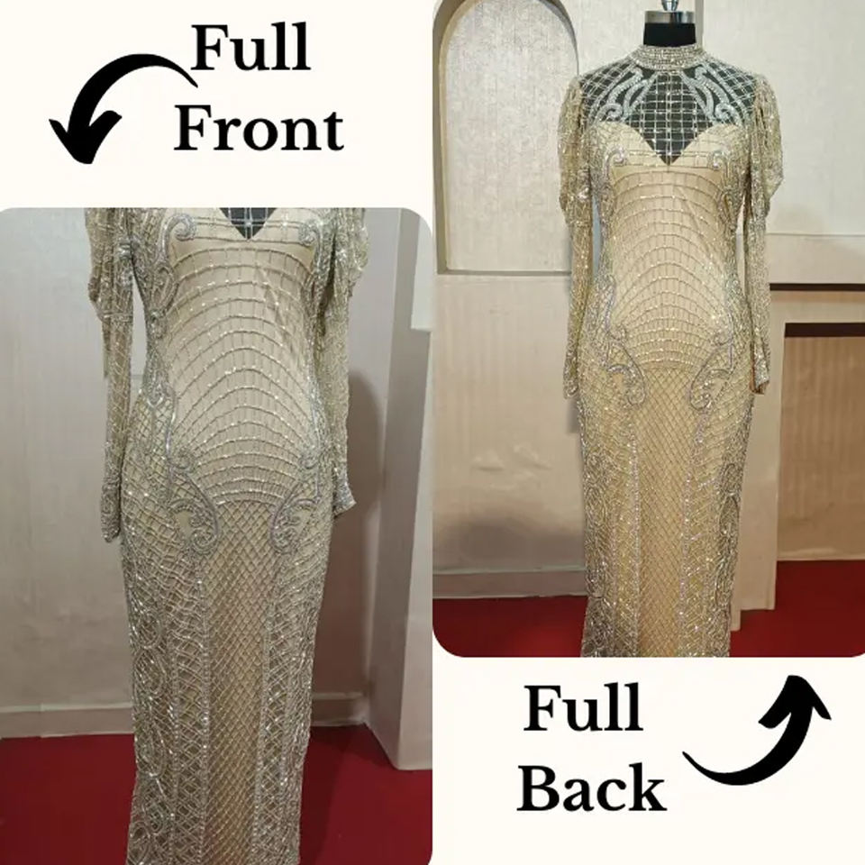 Beaded Evening Dresses Long Prom Gown Sequin Party Dress Golden Formal Gown for Women