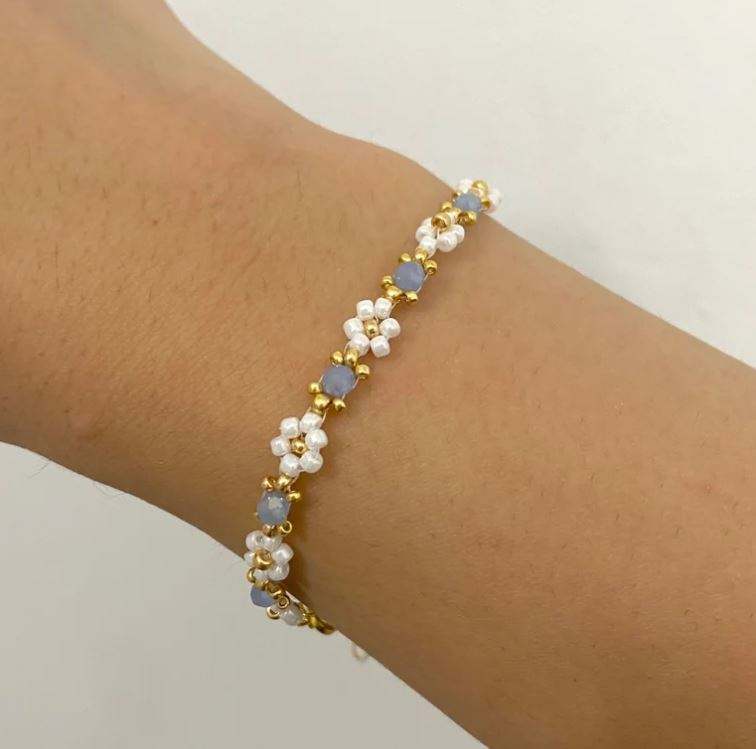 Beaded Flower Bracelet, Daisy Bracelet, Blue Floral Bracelet, Aesthetic Flower Bracelet, Gift for Her, Birthday Gift