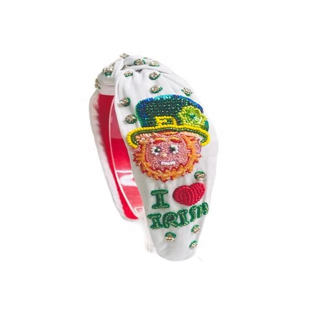St. Patrick's Day Collection Beaded Headbands Designer Hand Embellished Top Knotted Hair Accessories for Girls "I Love Irish"