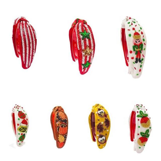 Beaded Headbands Christmas Top Knotted Hairbands Girls Hair Accessories Christmas Headbands Rice Beaded Headbands