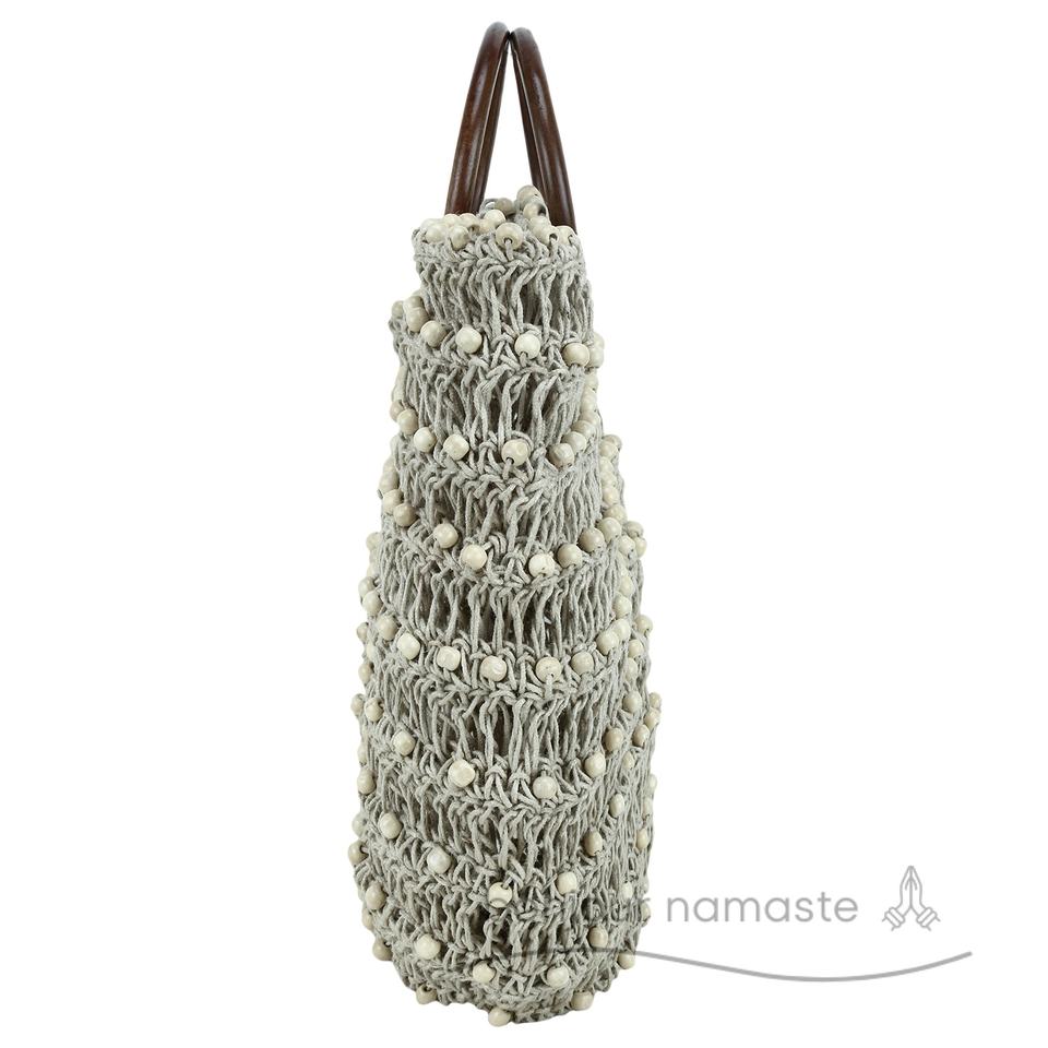 Beaded Jute Bag with Wooden Handle | Handmade Eco-Friendly Boho Fashion Handbag | Open Closure India