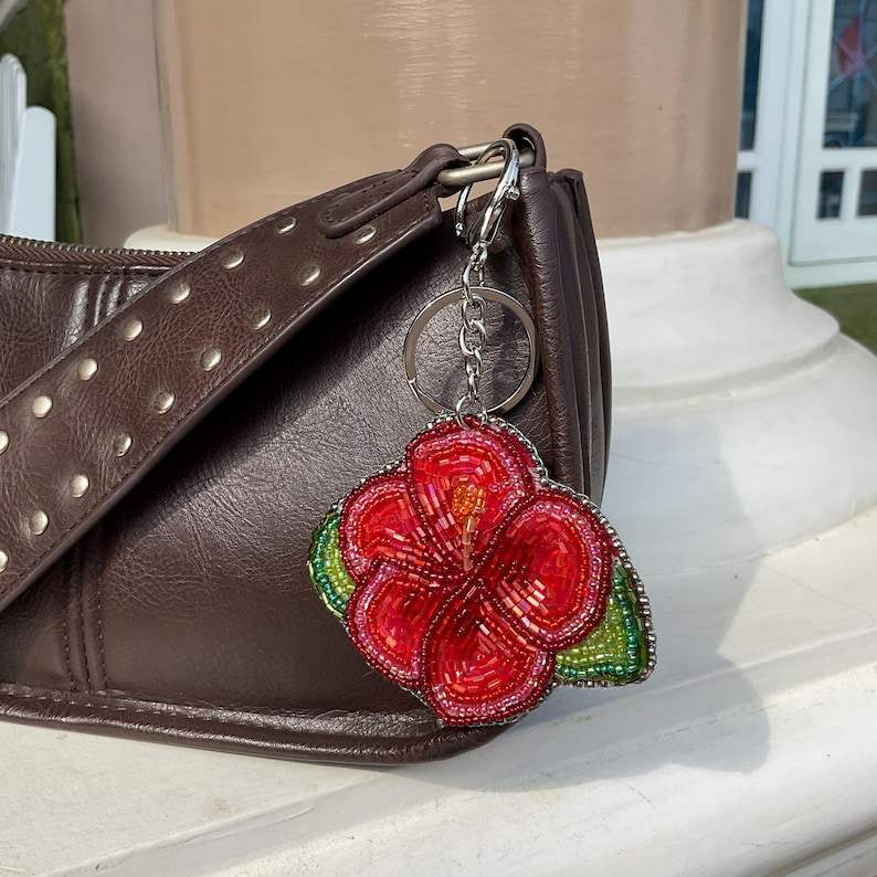 Beaded Lily Flower Bag Charm Handmade Embroidery Keychain Purse Accessory Cute Luxury Beautiful Latest
