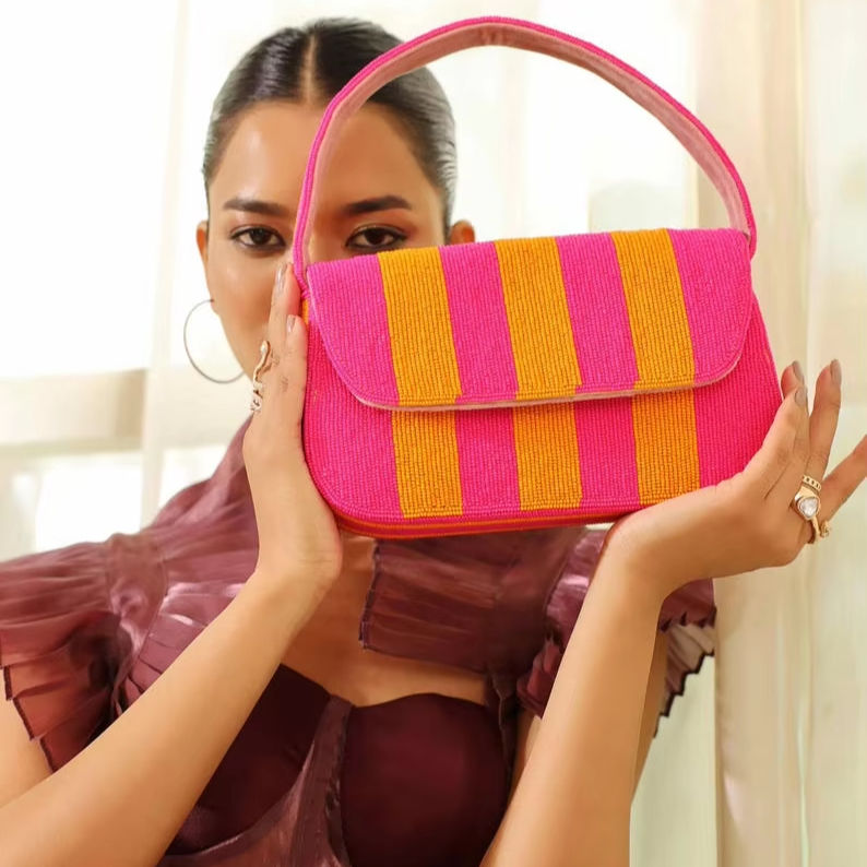 Beaded Magnolia Bag, Floral Beaded Purse, White Flower Handbag, Spring Shoulder Bag, Summer Beaded Purses, Handmade Floral