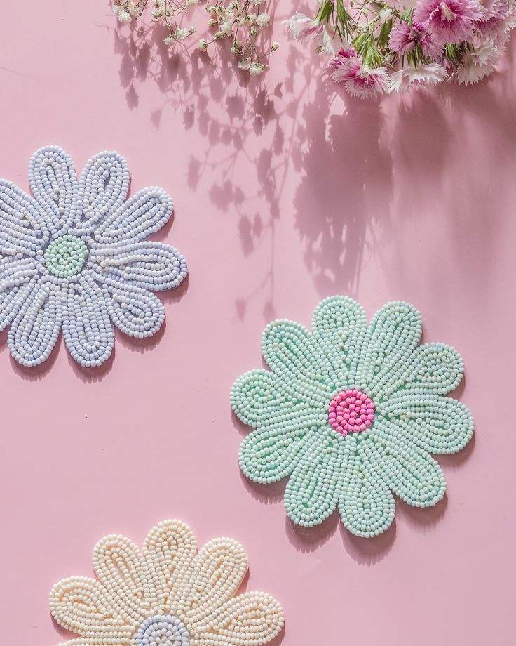 Beaded Pink Tiger Lily Flower Bag Charm Keychain Embroidery Purse Pendant with Iron Material for Her on New Year