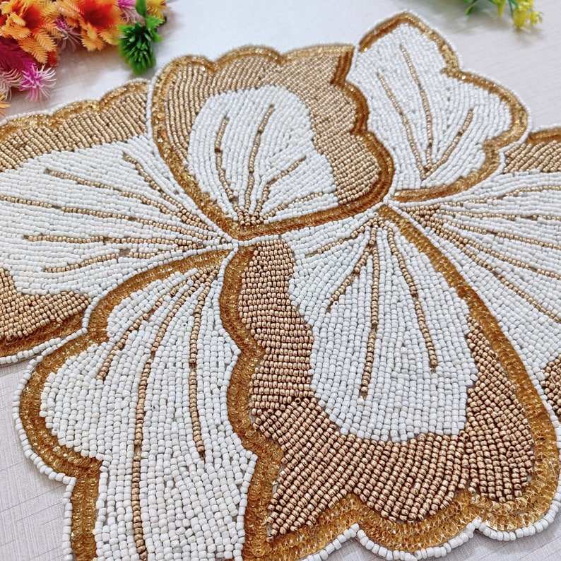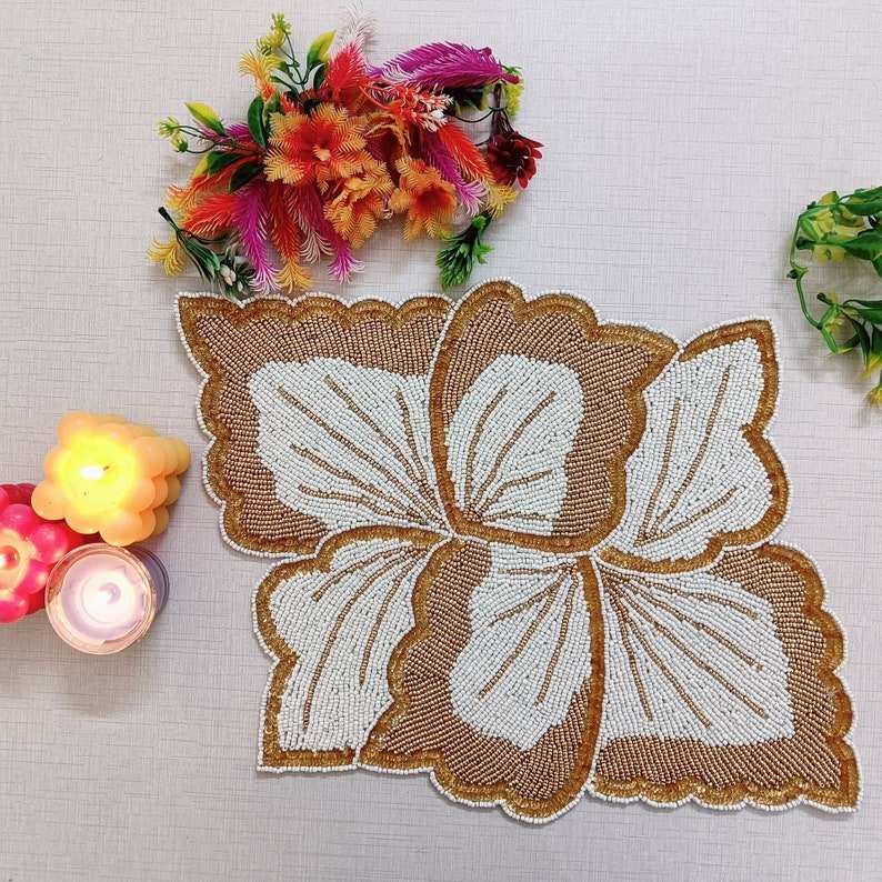 Beaded Placemat Handmade Round Charger for Luxury Dining & Holiday Decor Unique Piece Handmade Beaded, Placemat, Housewarming