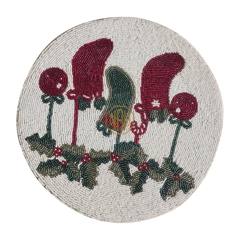 Beaded Placemats Luxury Indian Craft Table Linen Round Design Export Factory Direct Handmade Cotton Bulk Wholesale Supplier