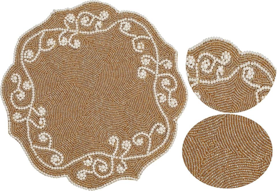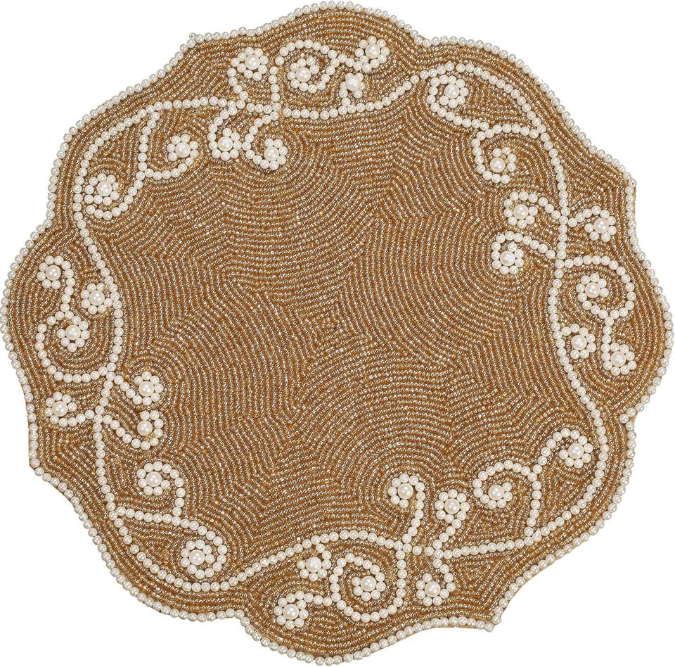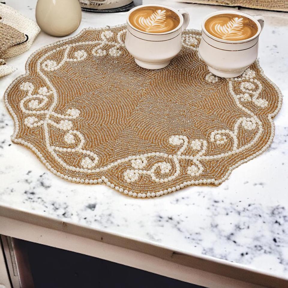 Beaded Placemats for Dining Table Teal Gold Silver ,Beaded Placemats Round for Gathering, Thanksgiving and Family Parties