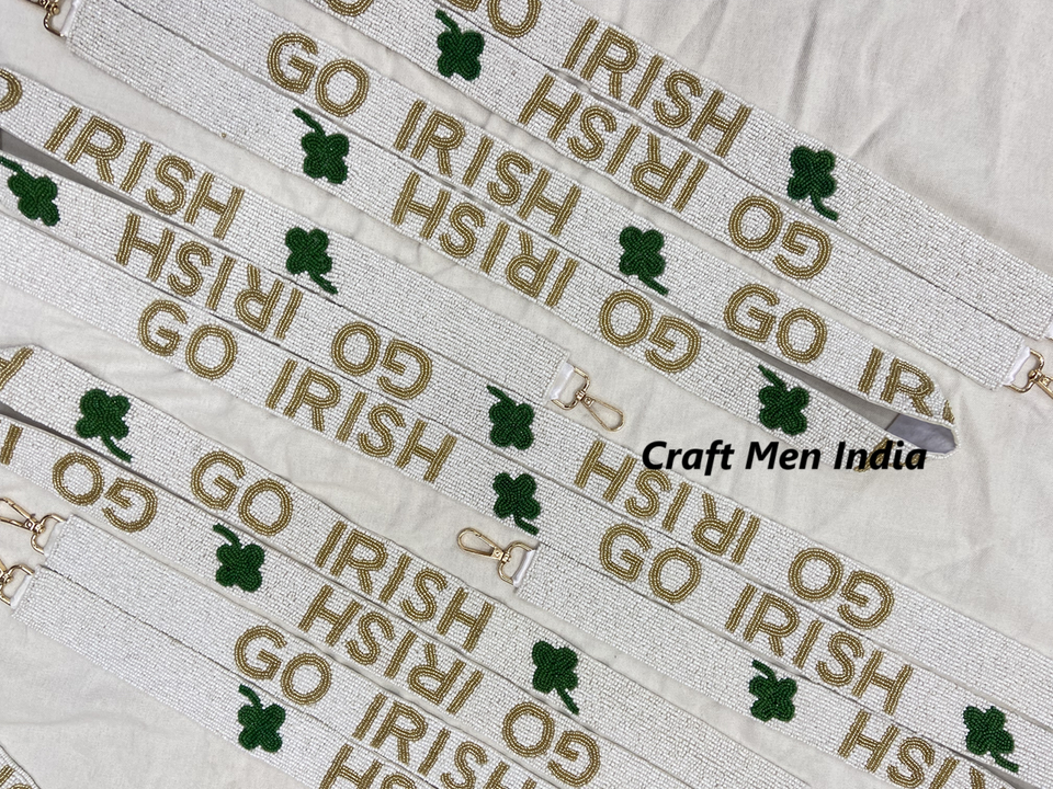 Customized Saint Patrick's Day Beaded Purse Strap Auto Lock Buckle Heat-Transfer Printed Unique Design Metal Belt Detachable