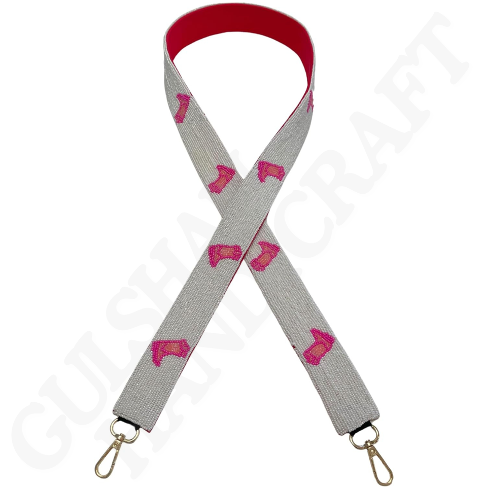 Handmade Western-Themed Beaded Purse Strap Stylish Rodeo-Inspired Fashion Pink Cowboy Boots Cotton Fabric Handbags Accessory