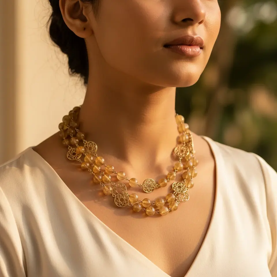 Beaded Rutilated Quartz Crystal Necklace Gemstone Jewelry Gift