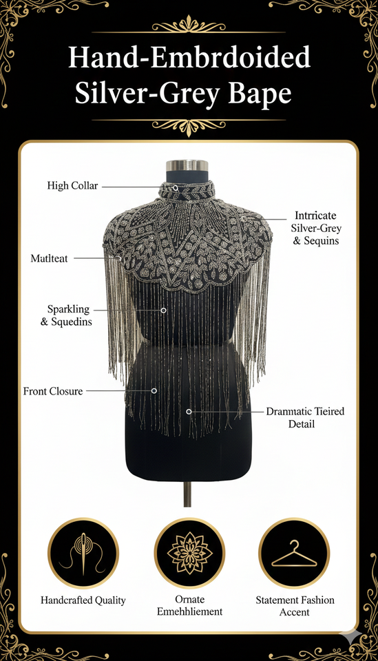 Beaded Sequined Floral Fringe Collar High Neck Evening Party Wear Vintage Bubble Silhouette Ball Gown for Women