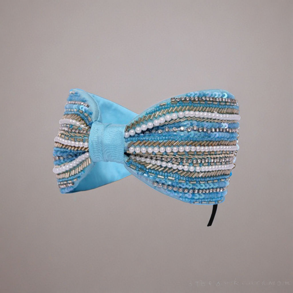 Beaded Turquoise Headband Pearl Crystal Embroidered Padded Fabric Women and Girls Fashion Accessories