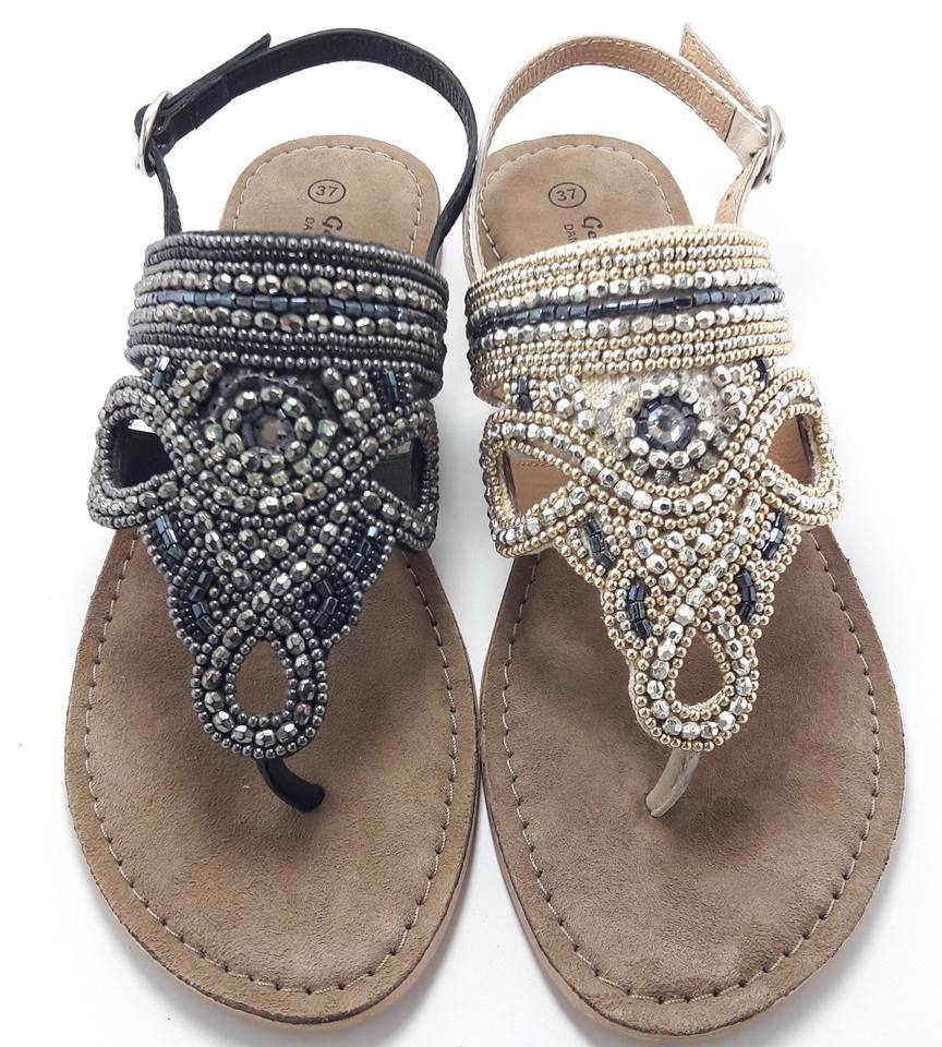 Beaded Women Leather Sandals Buckle Strap Beaded Thong Sandal Classical Women for Women Fashion Summer Trend