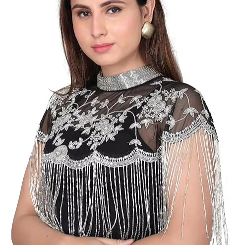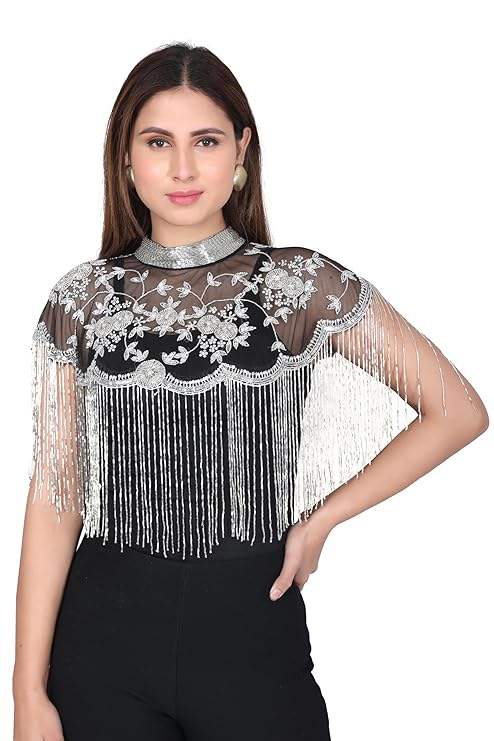 Beaded and Sequined Burlesque Cape Beaded Fringe Hanging Down Fastens at the Neck Beautiful Festive Clothes Festival Capes