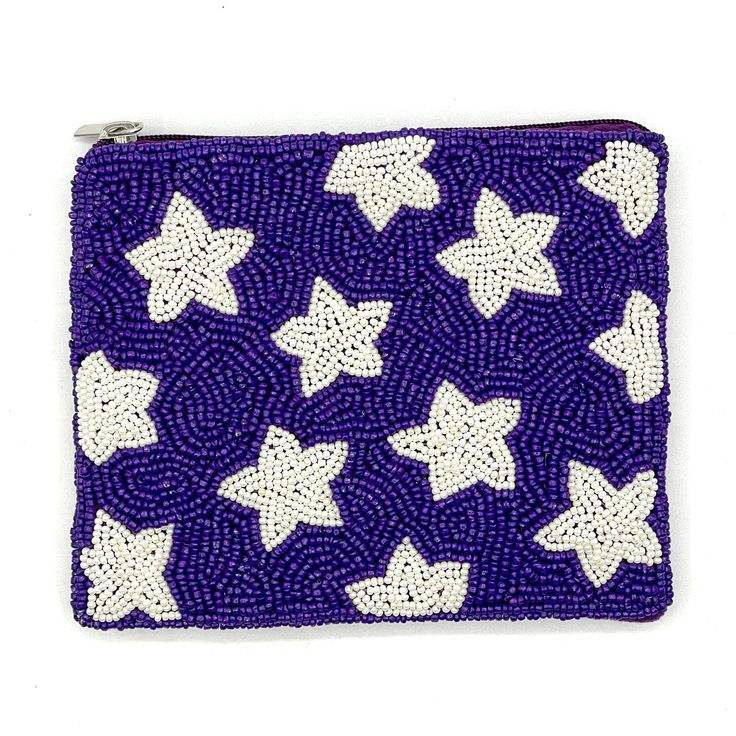Beaded design coin pouch beautiful embroidery mini zipper coin purse blue and white colour use coin purse by MD HANDICRAFTS