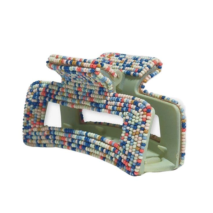 Beaded floral embroidery hair clip for daily wear high-quality hand beaded embroidery claw clip for women hair