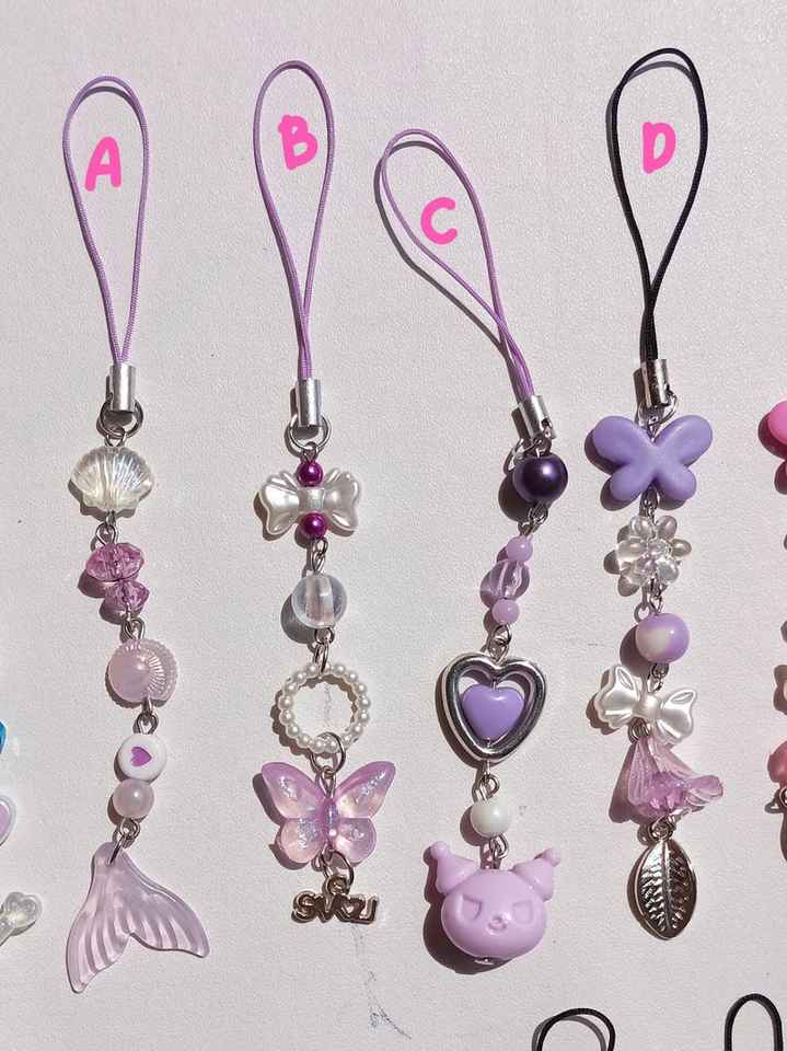 Beads Phone Charm and Strap Accessory with Y2K Pink White Purple Aesthetic Kpop Inspired for gift binder camera