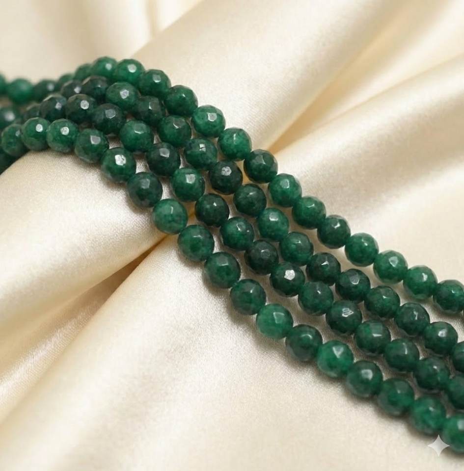 Beadsnfashion Green Stone Zed Cut Round Beads 4mm for DIY Jewelry Bracelet Necklace Earrings Making
