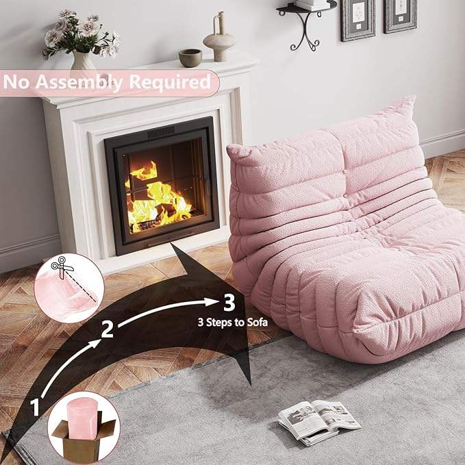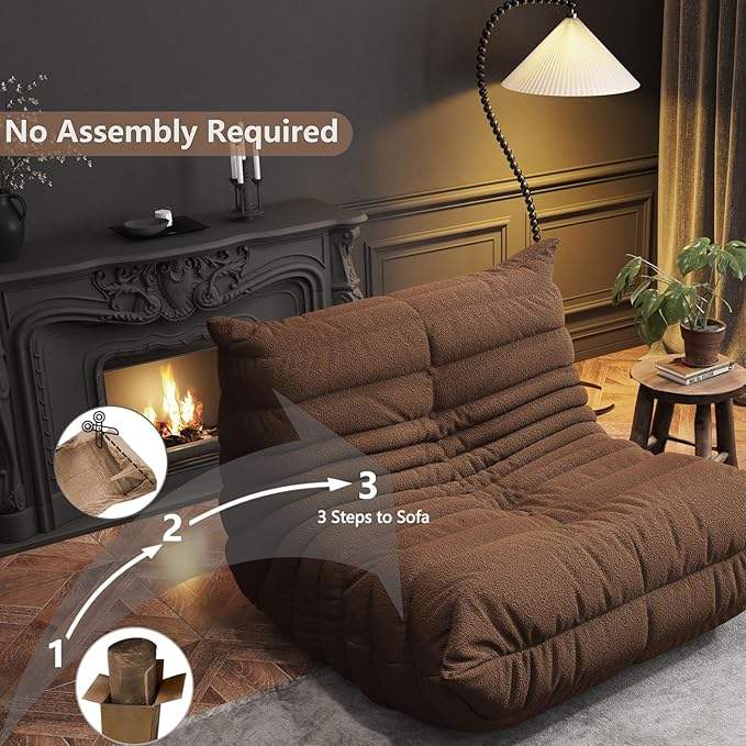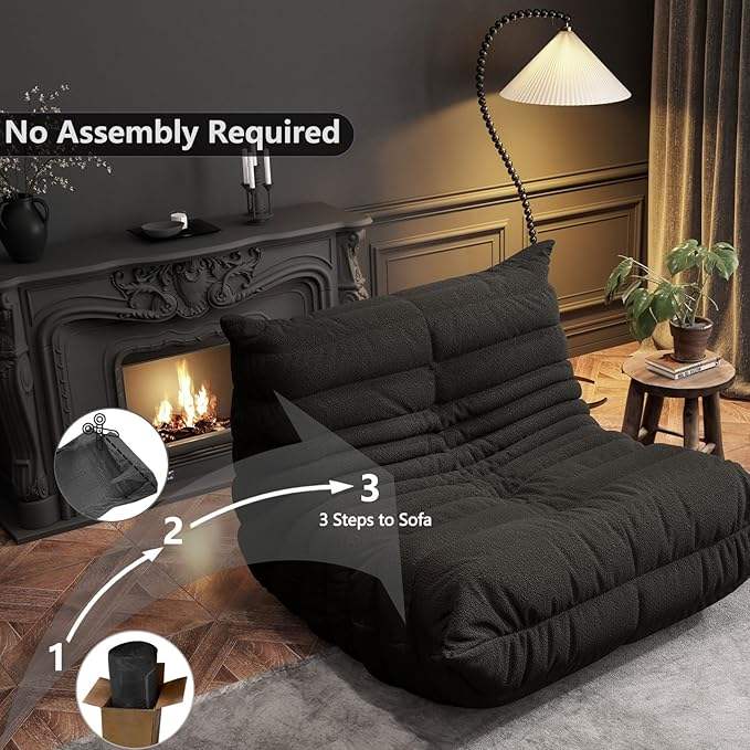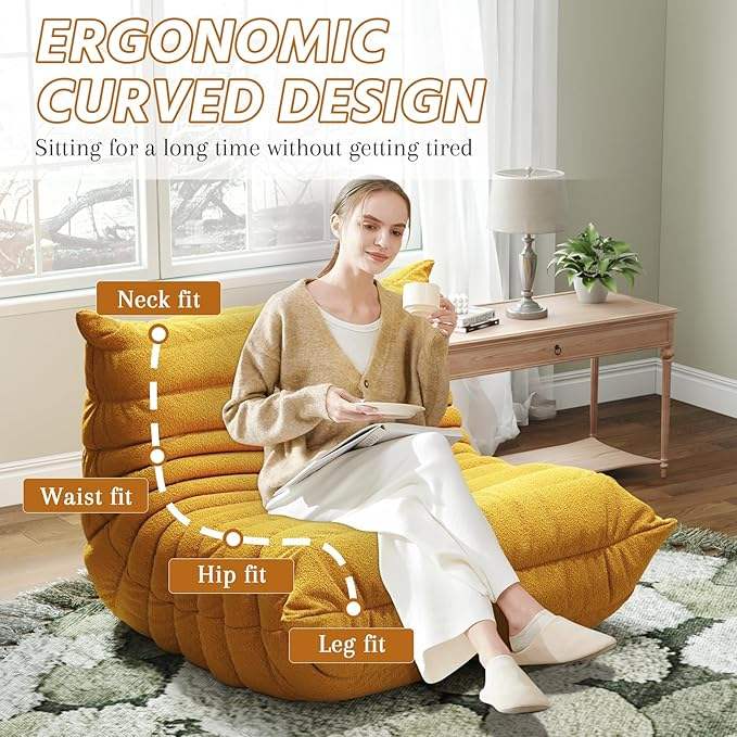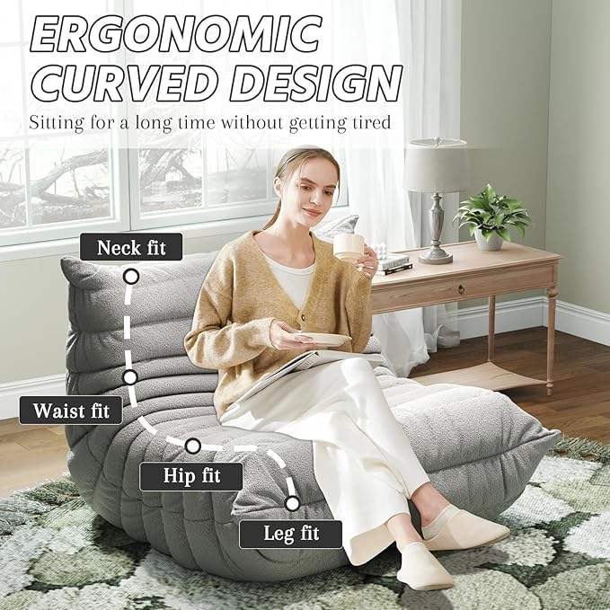 Bean Bag Chairs for Adults Foam Couch Single Sofa Chair, Soft Comfy Reading Nook Chairs, Floor Chair for Living Room Office Grey