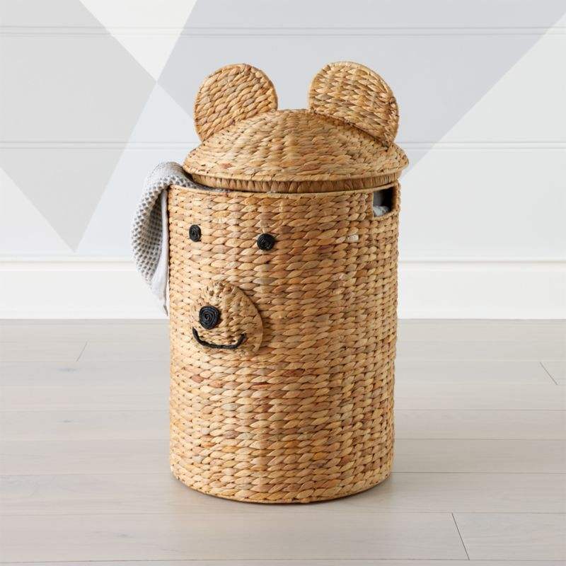 Bear Basket Woven Kid Toy Storage Bin with Lid for Bathroom & Clothing Use