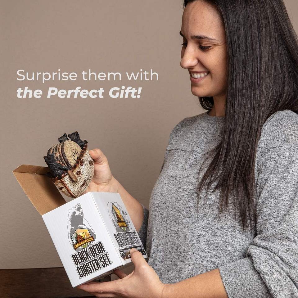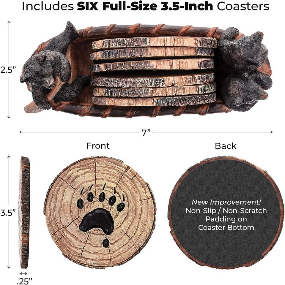 Handmade Black Bear Coasters Full Size Rustic Design with Art Deco Style Adorable Canoe Figurines and Log Cabin Decorations