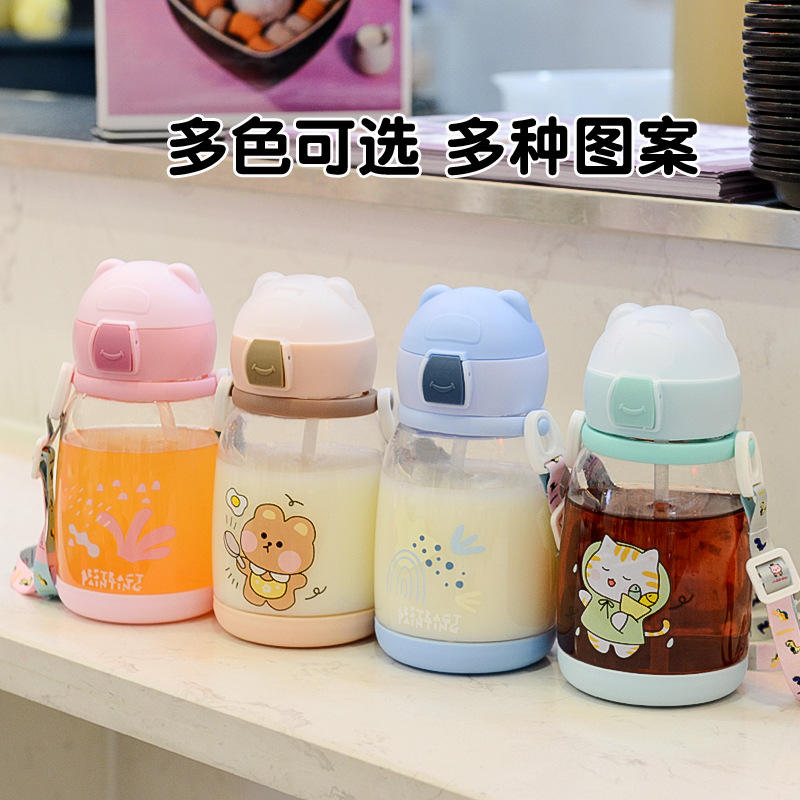 Bear Head Harness Plastic Water Bottle With Strap For Kids Outdoor Portable Cute Cartoon Design Summer Drink Cup