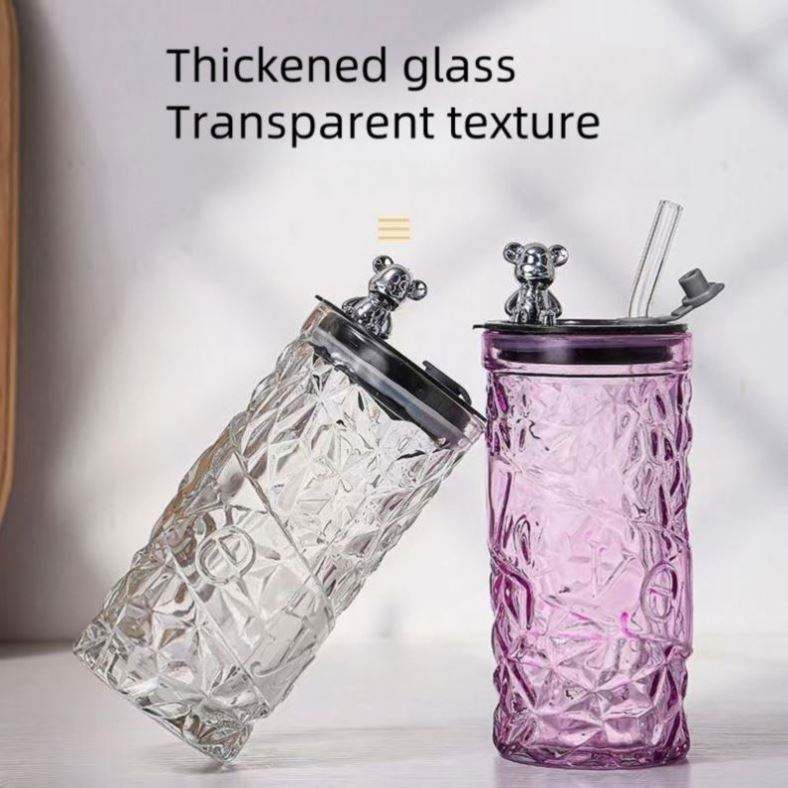 Bear Juice Drink Cup Office Large Capacity Opening Gift Glass Cup with Straw