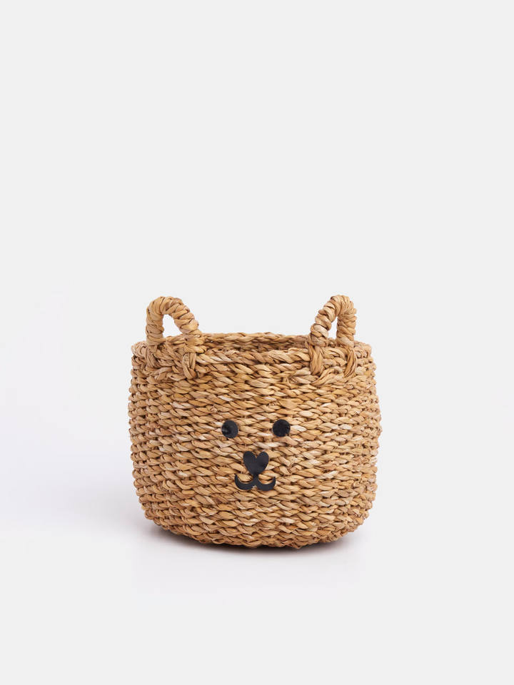 Bear-Shaped Rattan Basket Cute Handwoven Wicker Organizer for Nursery & Baby Essentials