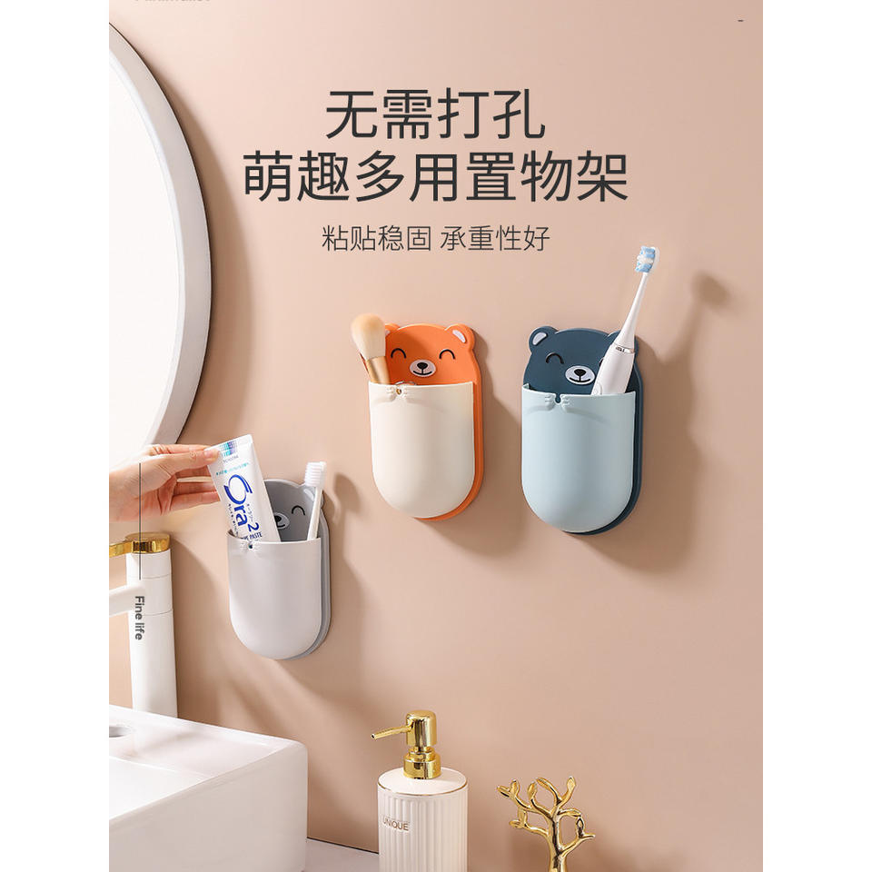Bear Wall Mounted Storage Rack 1 Layer Irregular Shape For Toothbrush Toothpaste Remote Control Bathroom Living Room Bedroom