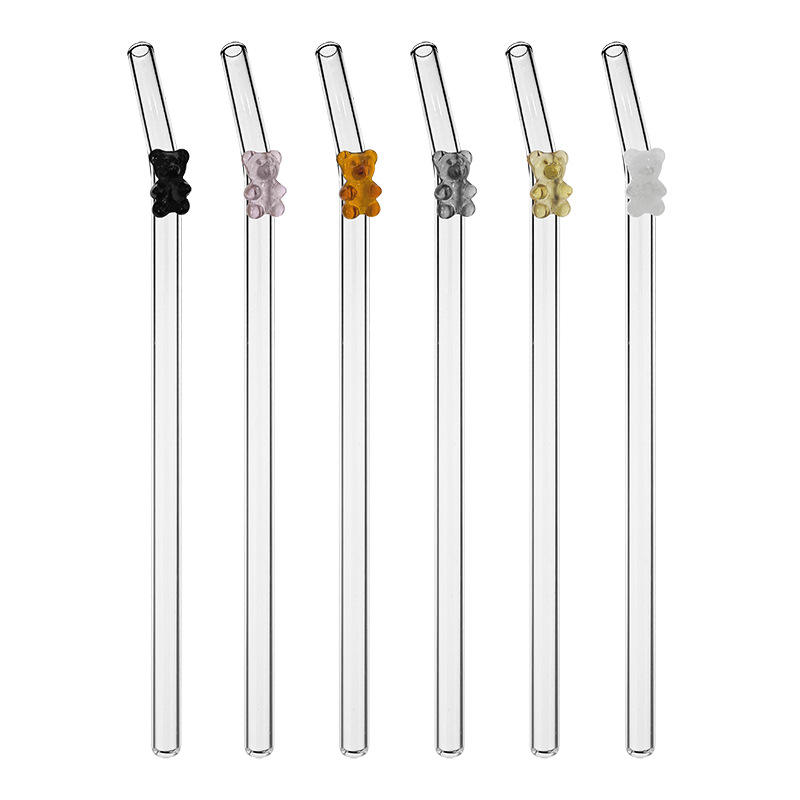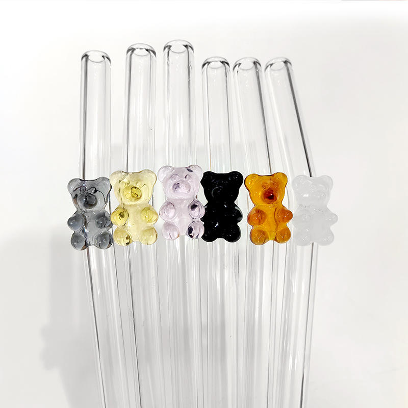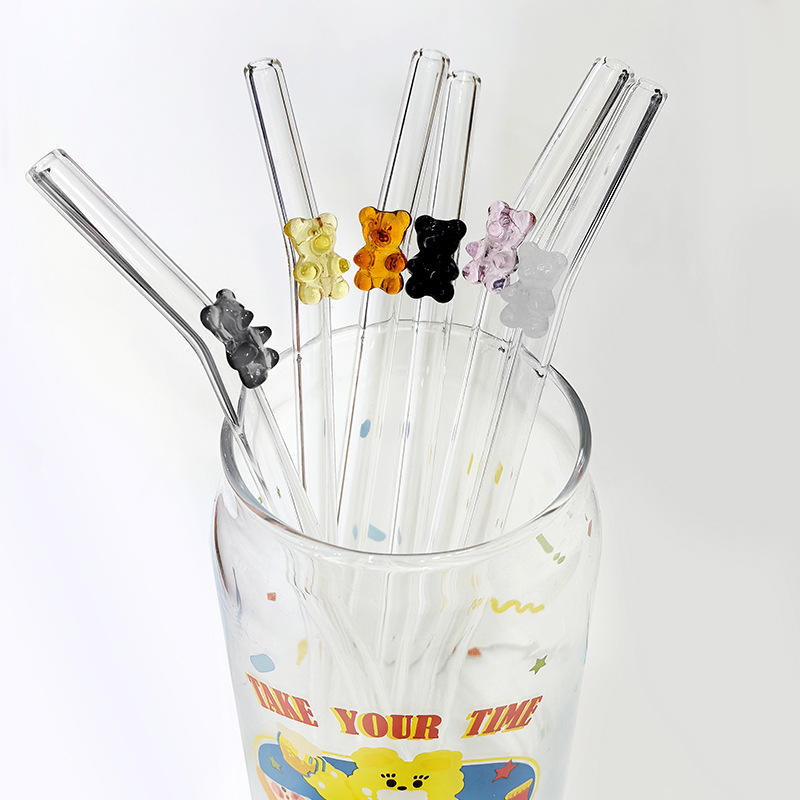 Bear glass straw New Creative Adhesive Shaped Straw Set with High Borosilicate Environmental Protection and Heat Resistance