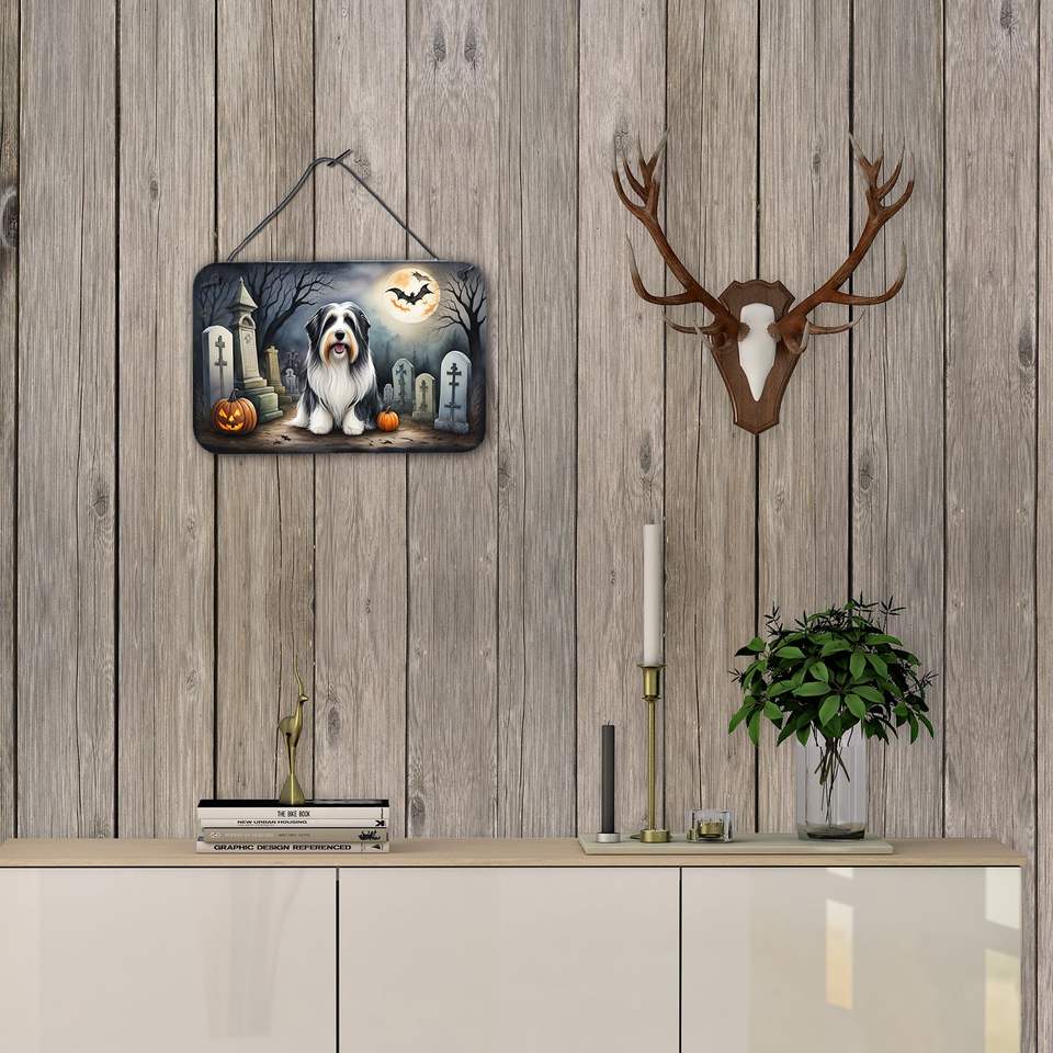 Bearded Collie Spooky Halloween Wall Door Hanging Prints Multicolor Aluminum Metal Sign for Kitchen Bar Home Decor 8HX12W