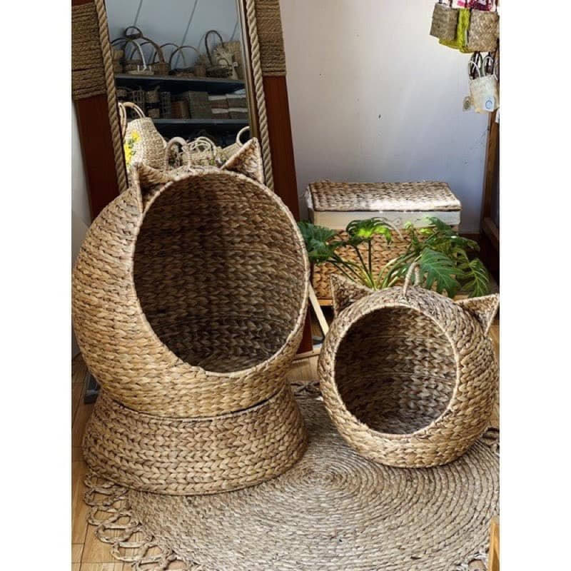 Beat Seller for Pet Products Lovely Straw Cat House Water Hyacinth Pet Bed Dog House Four Seasons Universal Removable and Washa