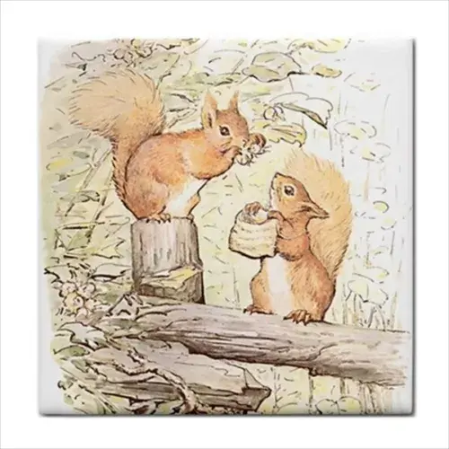 Beatrix Potter Art Squirrel Nutkin Tile Decorative Ceramic Craft Tile Accessories for Backsplash