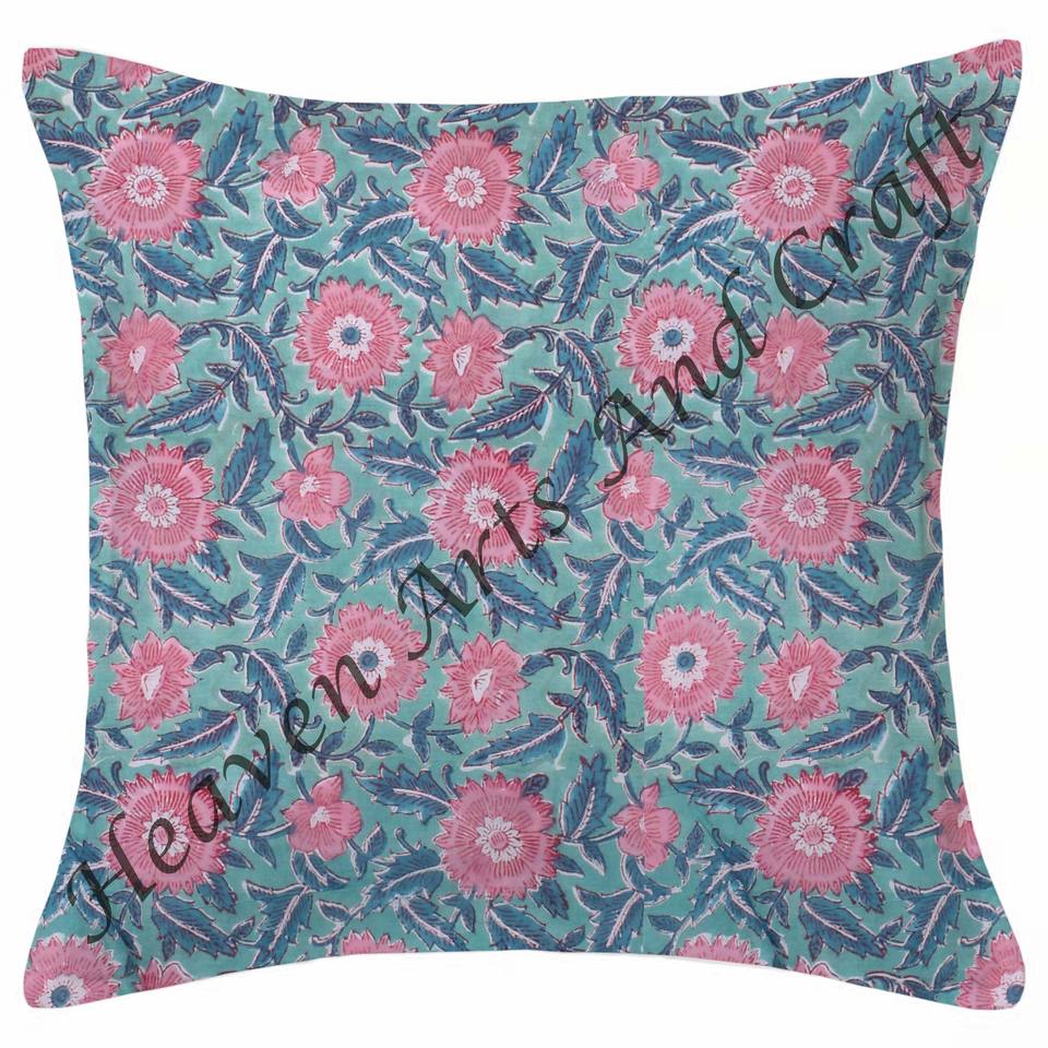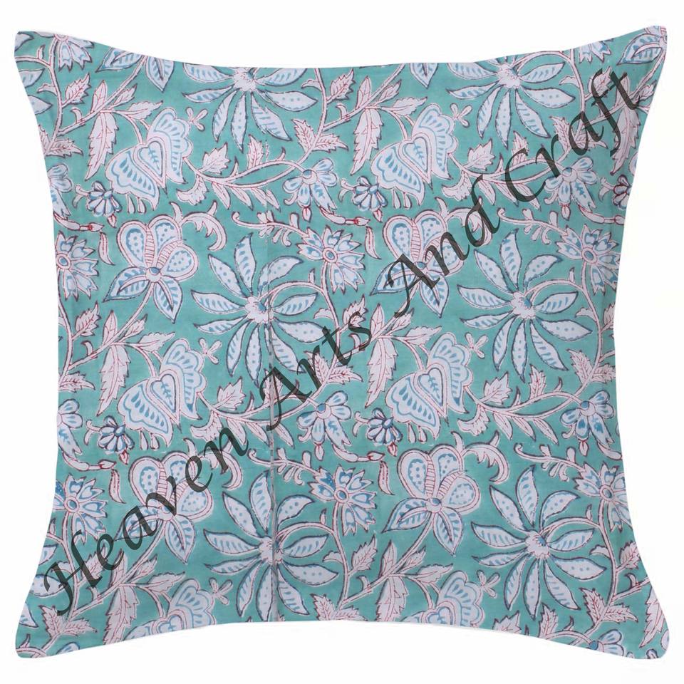 Beautiful 100% Cotton Hand Block Print Ethnic Vintage Cotton Cushion Cover Floral Printed On Pure Cotton
