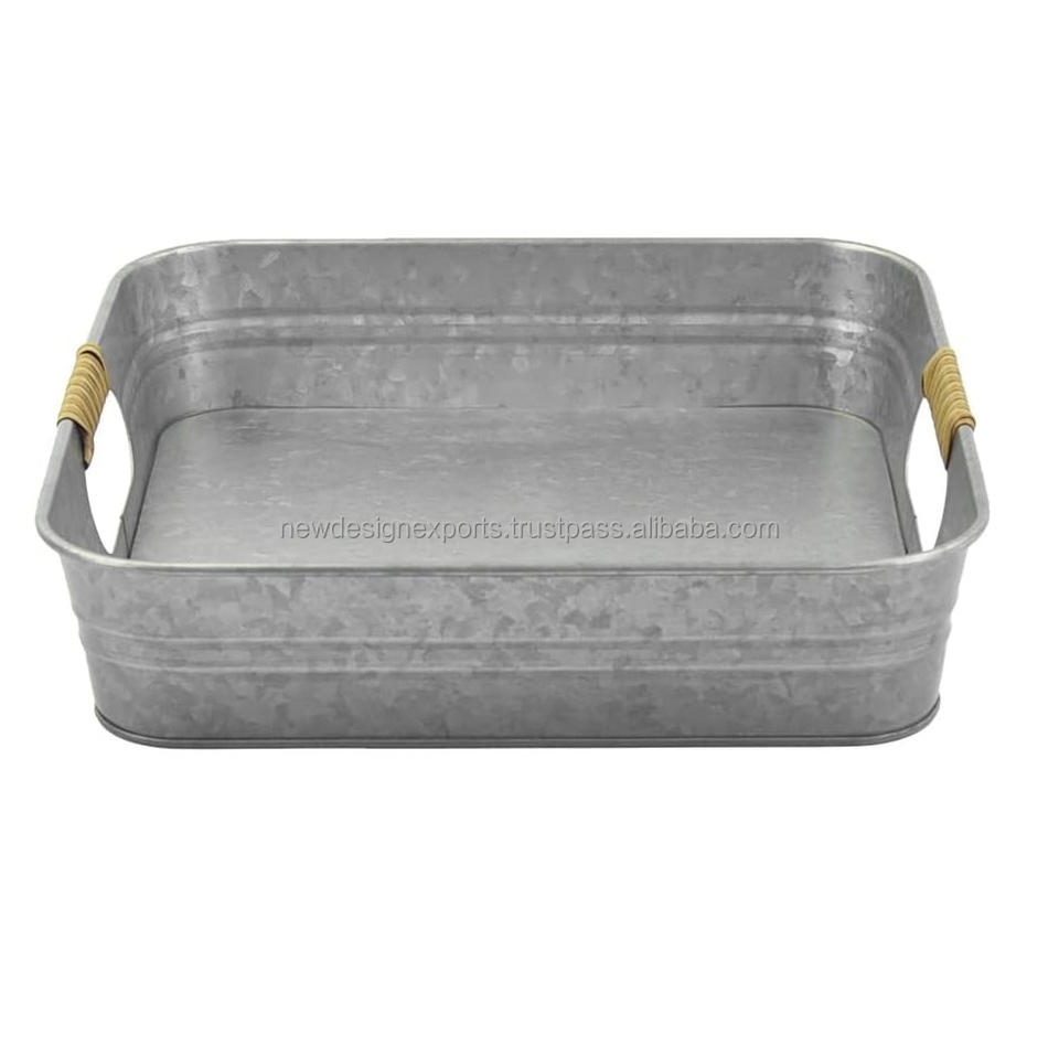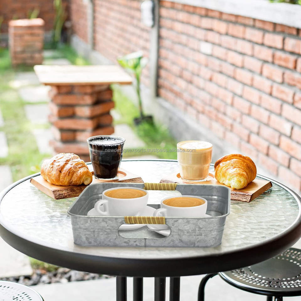 Beautiful 12\"x12\" Rectangle Galvanized Coffee Table Tray Decor Serving Tray with Handles for Home Décor