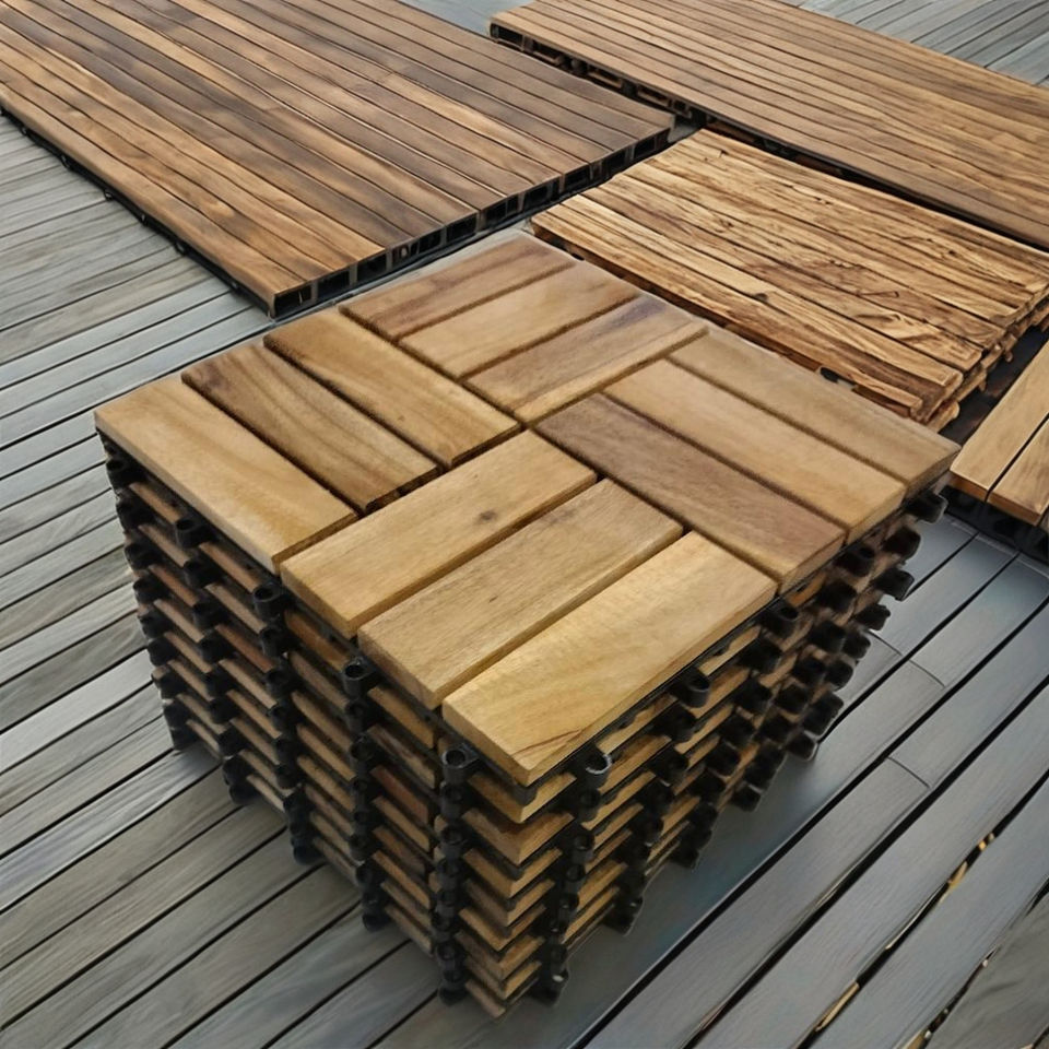 Beautiful 12mm ACacia Interlock Flooring Wood Deck Tiles Smooth Waterproof Anti-Slip for Outdoor Balcony Terrace