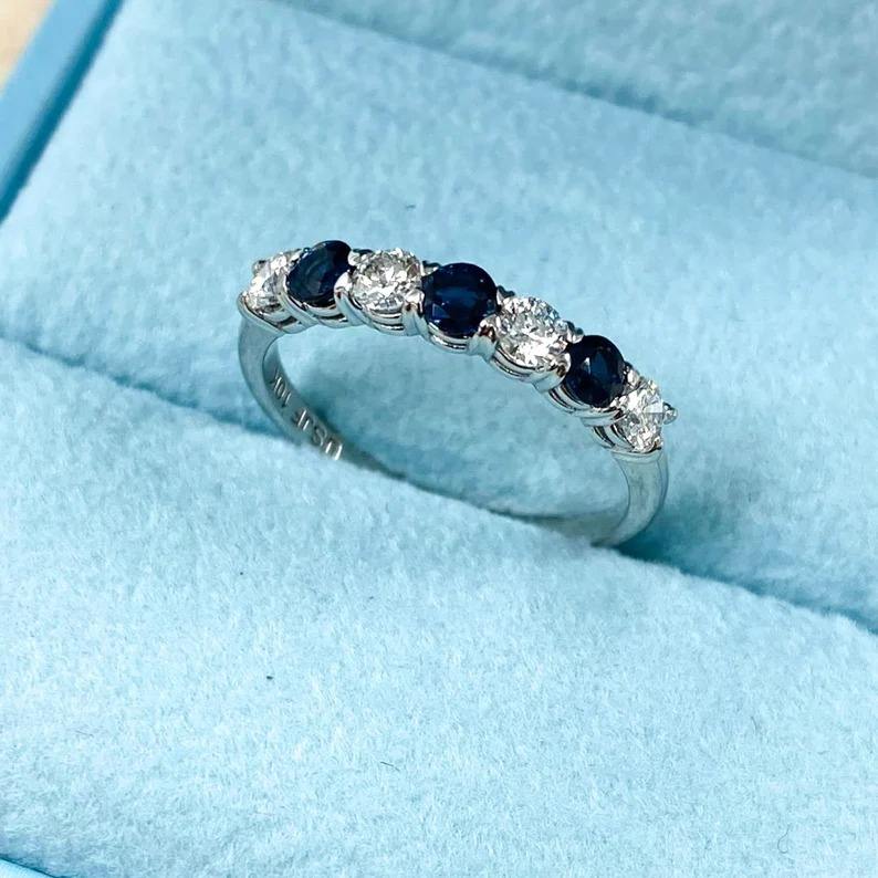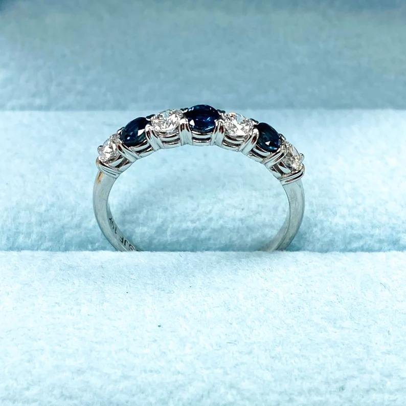 Beautiful 7 Stone Prong Set Blue Sapphire & Round cut Lab Grown Diamond Ring Customized Jewelry Beautiful Gift For Women