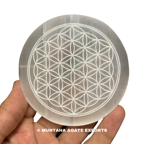 Beautiful 75-80mm Selenite Charging Plate Shape Animal Carving Technique Polished Feng Shui Style Engraving Gemstone Material